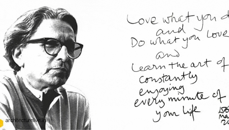 His travels were not all outside India either. He admired the use of local stone in Jaisalmer and Meenakshi Temple at Madurai, the street-like corridors of Fatehpur Sikri, the Kailask temple craved out of living rock and the town planning of Jaipur. Every place he visited was a place of discovery, both of the self and those embodied in that space. He learnt about societal issues, politics and way of living of different sections of society, especially the poorer segments. Everywhere he went, he was constantly reminded of the economics in architecture: "making most of the resources... from the choice of building materials to appropriate construction techniques, emphasis on multiple use of spaces have been important concerns all my life."
