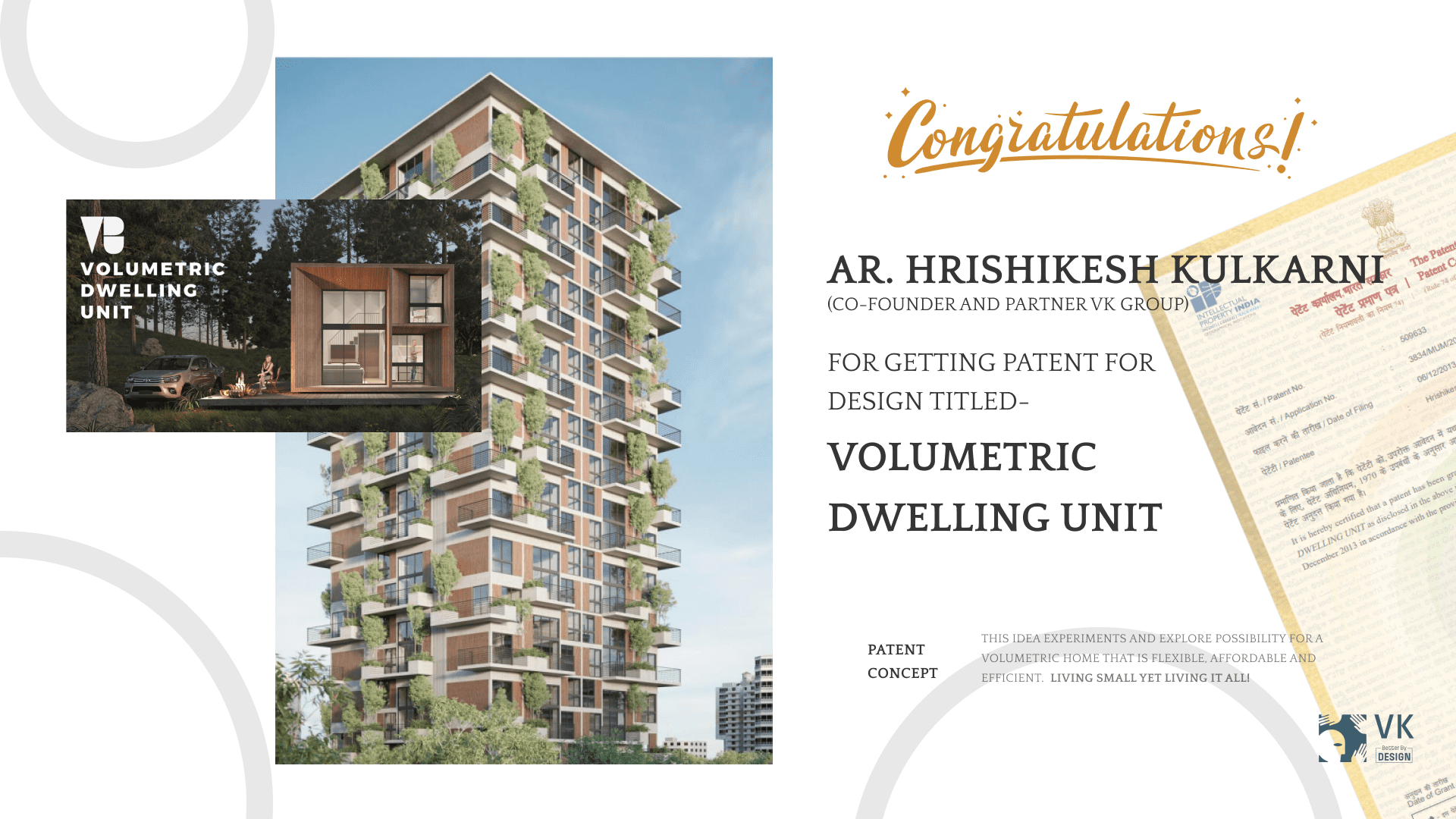 Ar. Hrishikesh Kulkarni bags his first Patent! | |